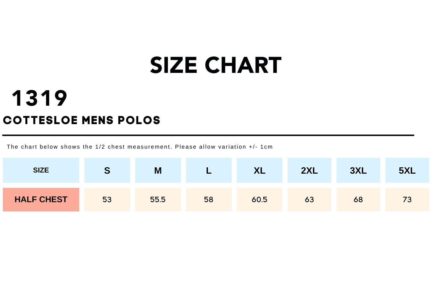 S, M, L, XL, 2XL, 3XL, 5XL |