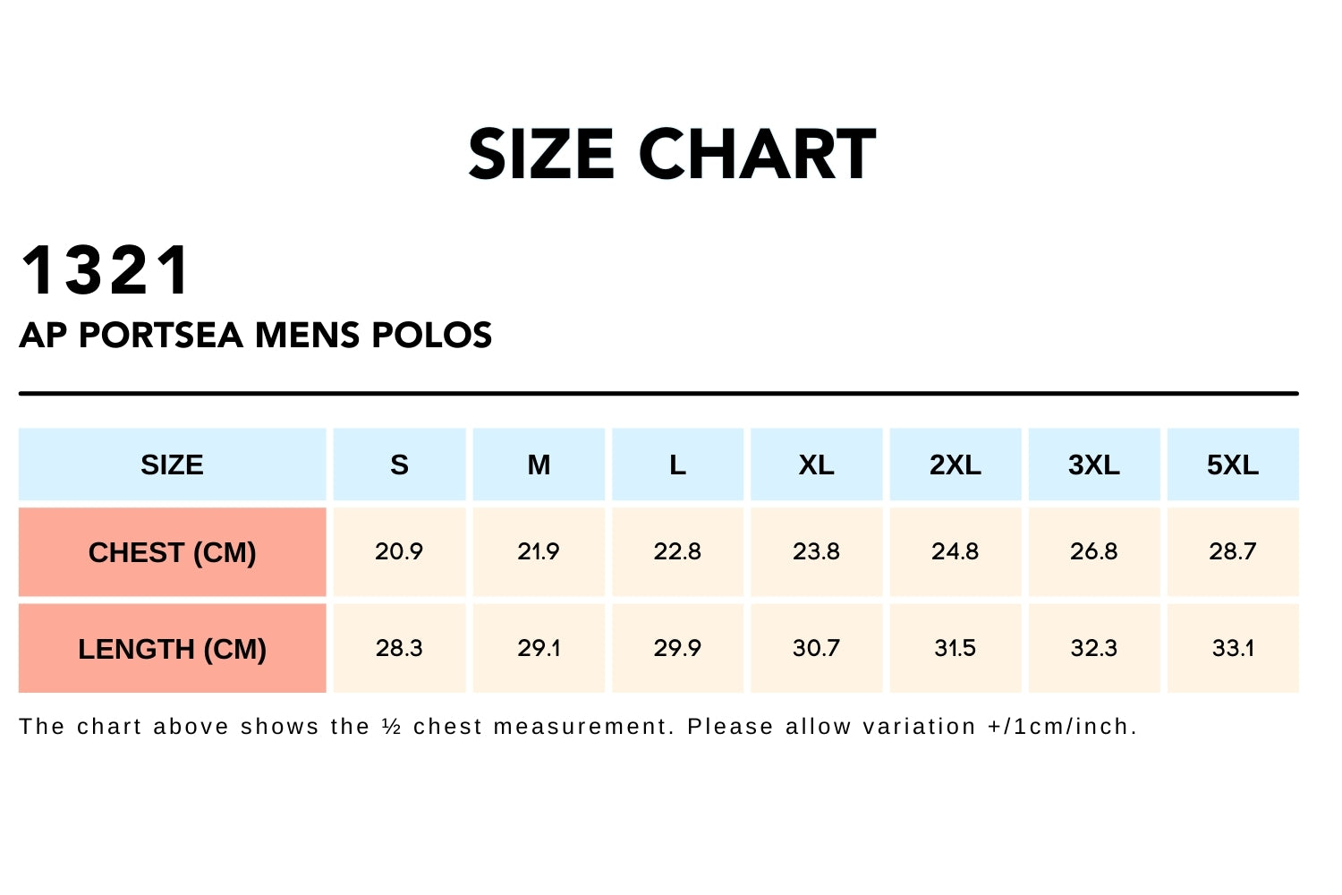 S, M, L, XL, 2XL, 3XL, 5XL |