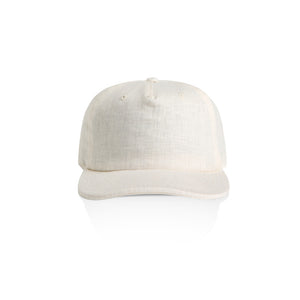 AS Colour Class Linen Cap: Lightweight and refined, this mid-profile, five-panel cap is crafted from 100% linen. It features internal mesh structure support, a flat peak, and a self-fabric adjustable fastener with a metal buckle. Includes tonal under-peak lining and a tear-out AS Colour label for personalized comfort.