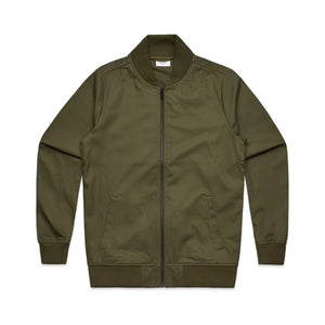 The AS Colour Bomber Jacket: robust cotton drill, metal anti-black YKK zipper, ribbed collar, hem & cuffs. Preshrunk for fit consistency, with two side pockets and an invisible lining access zip for branding ease.