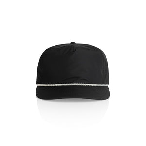 Explore urban style with the AS Colour Surf Rope Cap. Made from lightweight 100% recycled nylon, this mid-profile snapback features a flat peak and mesh structure support. It is enhanced with a unique matte nylon rope detail at the crown for a distinctive, modern appeal.