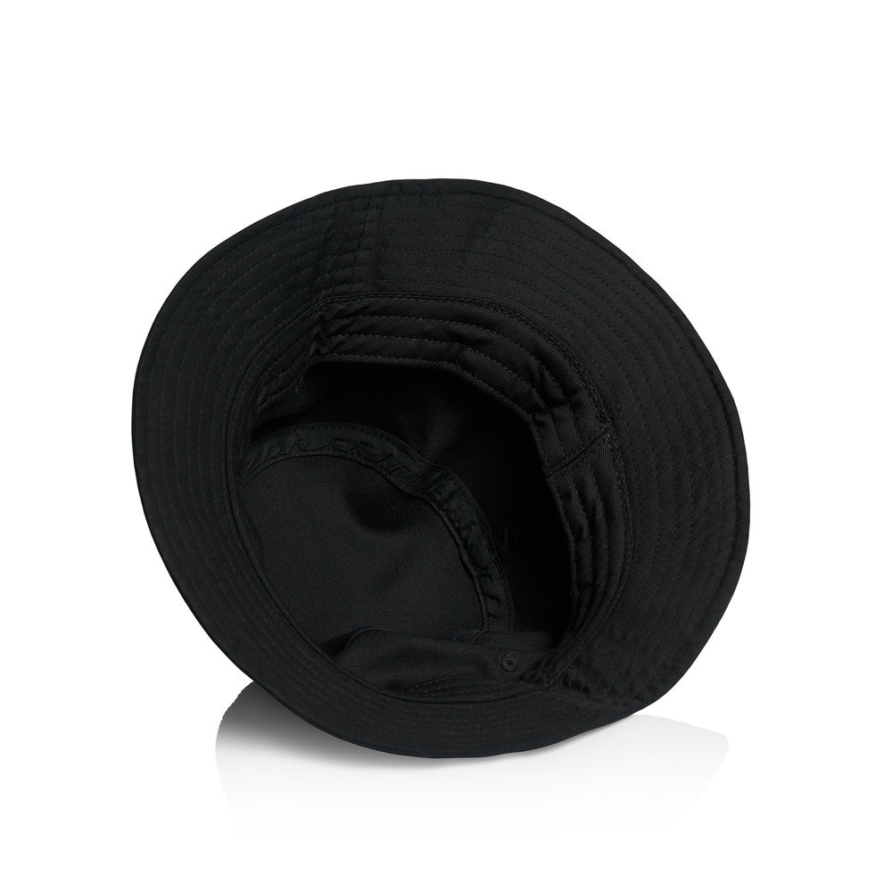 The AS Colour Women's Bucket Hat is showcased, and meticulously designed for a snug fit with light-mid weight 100% cotton. Enhanced with a reinforced brim, stitching detail, and side eyelets, it offers style and comfort in one size fits all—Customise with a tear-out AS Colour label for a personal touch.