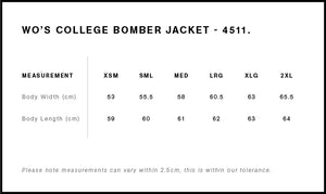 Embrace classic style with a modern twist in the Wo's College Bomber Jacket. Its design includes a ribbed collar, hem, and cuffs, lending a traditional bomber silhouette that pairs effortlessly with casual outfits.