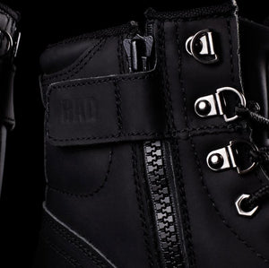 The BAD STORM Zip Side Safety Work Boots are designed to offer unbeatable protection, comfort, and convenience for those who work in demanding environments. Crafted from premium quality leather, these boots feature a steel toe cap for maximum protection against impact and compression. The oil, acid, and water-resistant materials ensure the boots perform reliably in harsh conditions, while antistatic properties keep you safe in sensitive environments.