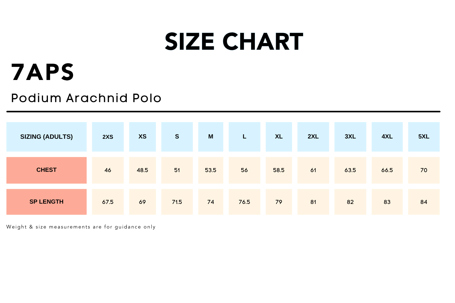 2XS, XS, S, M, L, XL, 2XL, 3XL, 4XL, 5XL |