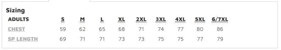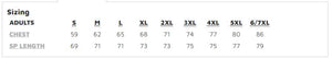 S, M, L, XL, 2XL, 3XL, 4XL, 5XL, 6/7XL |