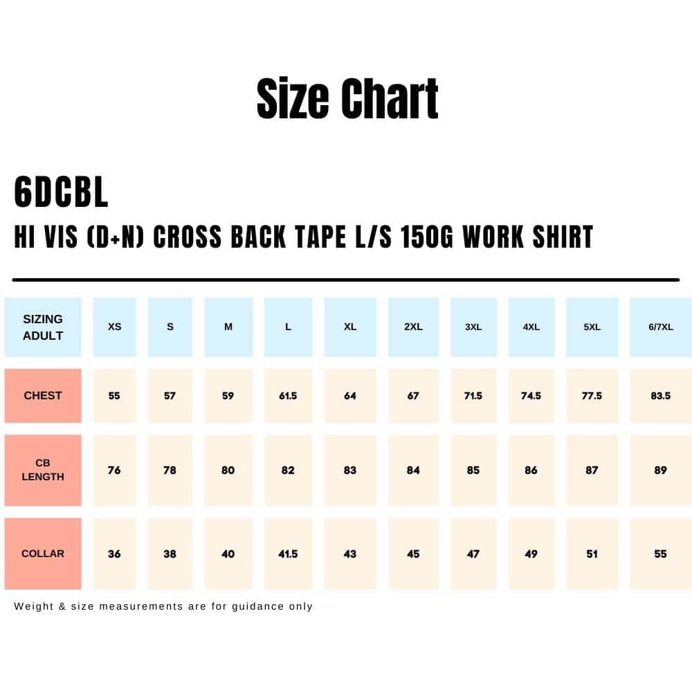 JB 6DCBL Hi Vis (D+N) Cross Back Tape L/S 150G Work Shirt
