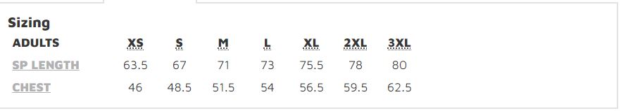 XS, S, M, L, XL, 2XL, 3XL |