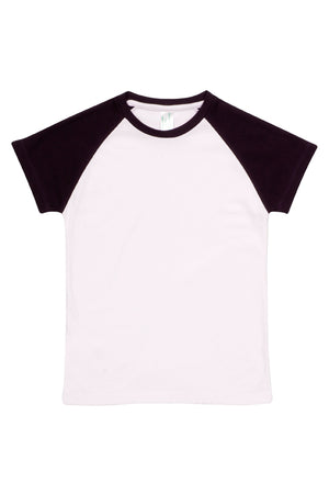 - Design: Features a short-sleeve raglan style with contrast sleeves for a trendy, sporty look.