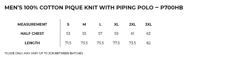 RM Men's / Unisex Cotton Pique Knit With Piping - P700HB