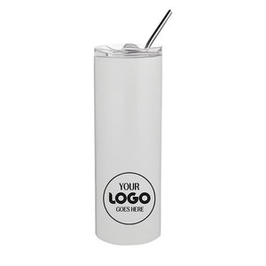 They're made of stainless steel and are durable for everyday use and come with a straw and lid for easy use. The white tumbler is polymer coated for dye sublimation decoration with a bold brand or a colourful creative.