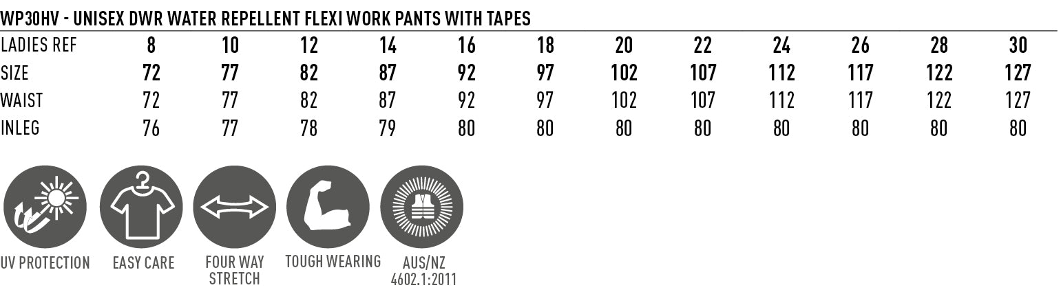 WS Unisex DWR Water Repellent Flexi Work Pants with Tapes - WP30HV
