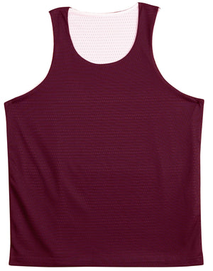 Two layers of 100% Polyester Mini Mesh. Fully reversible for wearing on either side. The bottom hem of each layer is finished separately to allow for embellishment. The outside locker label with size is on the wearer's left side near the bottom hem.