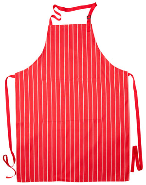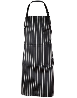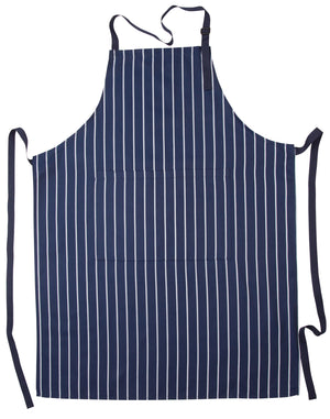 The Bib Stripe Apron is a durable and functional choice for culinary and hospitality professionals, combining style with practicality through its quality fabric, convenient pocket, and adjustable design.