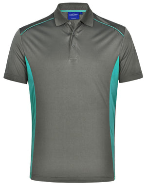 Breathable mesh panels on sides. Short sleeves. Contrast panels front. Contrast piping on shoulders and back. Comes with a loose pocket.