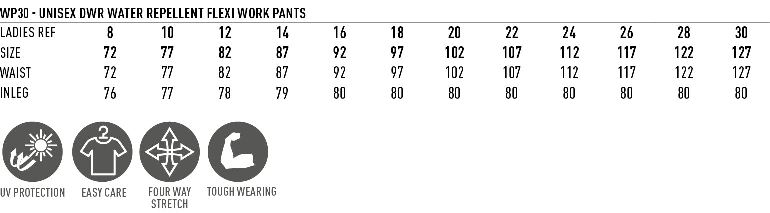 WS Unisex DWR Water Repellent Flexi Work Pants - WP30